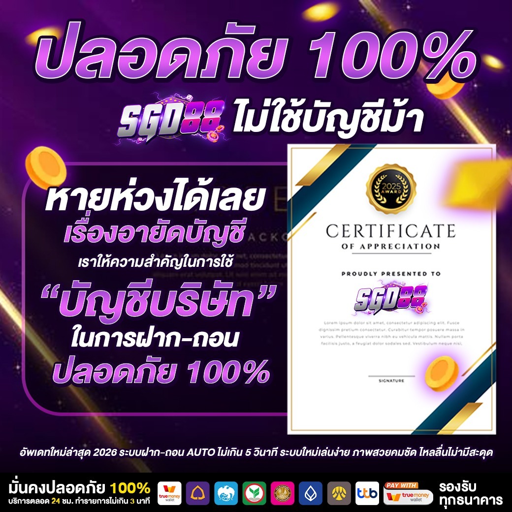 ระบบความปลอดภัยของ SGD88 ก็น่าประทับใจไม่แพ้กัน ด้วยเทคโนโลยีการเข้ารหัสระดับสูง และการได้รับใบอนุญาตจากหน่วยงานการพนันที่น่าเชื่อถือ ทำให้ผู้เล่นมั่นใจได้ว่าข้อมูลส่วนตัวและธุรกรรมทางการเงินจะปลอดภัย นอกจากนี้ยังมีทีมซัพพอร์ตที่พร้อมให้บริการตลอด 24 ชั่วโมง คอยช่วยเหลือแก้ไขปัญหาต่างๆ ได้อย่างรวดเร็ว